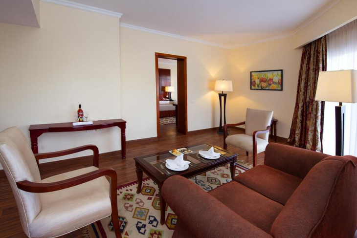 На территории отеля работают 8 ресторанов и баров. В ресторане Oyoun сервируют блюда в формате «шведский стол». В ресторане Primi Piatti можно заказать блюда итальянской кухни. Напитки и коктейли подают в пабе и баре Soweto.
