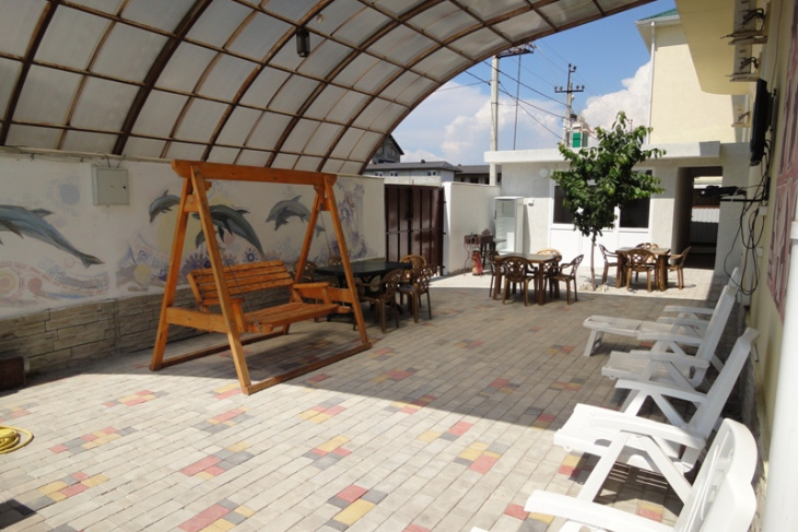 Сервис в отеле Доступ в Интернет: WI-FI (бесплатно) ,-мангал Услуги в отеле Терраса для загара: Летние беседки, уголки зелени и цветов во внутреннем дворе по всему периметру. Развлечения и спорт 1 открытый бассейн Пляж песчаный пляж в 15 мин ходьбы Услуги на пляже платно Техника кондиционер-сплит система -