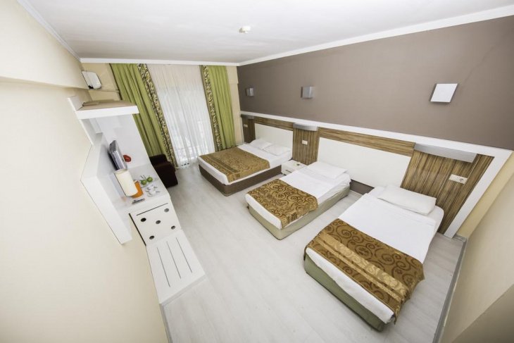 Номера -Standard Room-Economy RoomНомеров 285 Смена белья в номере 2 раза в неделю Уборка номера ежедневно В ванной ванная В номерах ванная - туалет - фен - спутниковое ТВ - телефон - сейф (платно) - мини-бар - кондиционер - высокоскоростной интернетWi-Fi по всей территории отеля(платно) - карточная система замка Условия для детей - 1 детский бассейн- игровая площадка- мини клуб (4-12 лет)- прокат колясок (платно)Сервис в отеле камера хранения багажа Магазины + Услуги в отеле - круглосуточный отдел регистрации и обслуживания гостей - доставка прессы Развлечения и спорт сауна - турецкая баня - парилка - фитнесс центр - настольный теннис - СПА - массаж - волейбол - водные виды спорта - дневные спортивные мероприятия и вечерние шоу (анимация) - дискотека Красота и здоровье салон красоты Пляж Отдаленность от моря 50 метров. До собственного пляжа 300 метров, песчано-галечный; Услуги на пляже шезлонги, матрасы, полотенца бесплатно. В течение дня шатл сервис до пляжа. Обслуживание в номерах 0-24 Питание Ссистема питания- Ультра Все включено