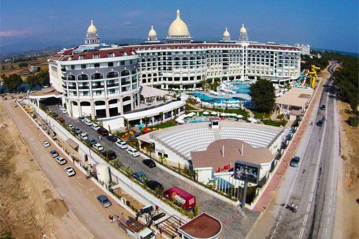 Аренда детских колясок - по запросу на ресепшен (по наличию).Сервис в отеле Амфитеатр, Доктор (платно), Парикмахерская (платно), Прачечная (платно), Салон красоты (платно), Магазины, Автомобильная парковка (бесплатно), Аренда автомобиля (платно), Wi-Fi (бесплатно)Отель принимает кредитные карты: Master Card, VisaКонференц-зал (платно)Количество залов: 3БассейнКрытый бассейн, Открытый бассейн, Водные горкиКомментарии: 2 открытых бассейна (без подогрева), 1600 и 100 кв.м.1 крытый бассейн (подогрев ноябрь-март), 160 кв.м.6 водных горок, часы работы 10:00-12:00 / 14:00-16:00.Бассейны и горки работают в зависимости от погодных условий.Развлечения и спорт Дискотека (бесплатно)